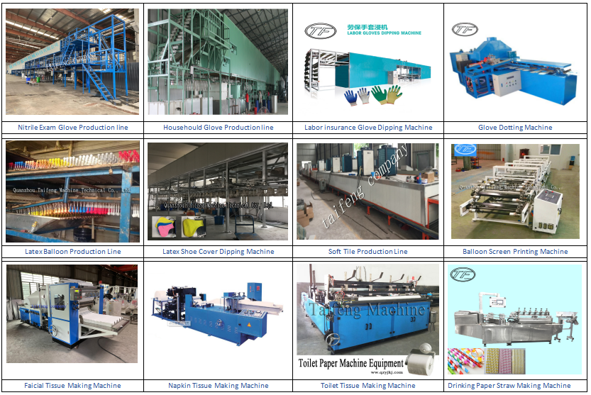 Taifeng company, like the original mind, has always been committed to the production of professional, safe and reliable medical, inspection, household and industrial latex, nitrile glove production lines, mask machines, cigarette paper folding machines, cigarette paper printing and cutting machines, face napkins, napkins, toilet paper machines, balloon production lines and printing presses and other mechanical products., the company pays close attention to product quality and reputation, and has passed CE certification, so that the quality of the company's products is in line with international standards. The development over the years has been trusted and praised by customers, and the products are not only sold to most provinces and cities in China, but also exported to Spain, Egypt, Colombia, Japan, South Africa and other countries and regions.