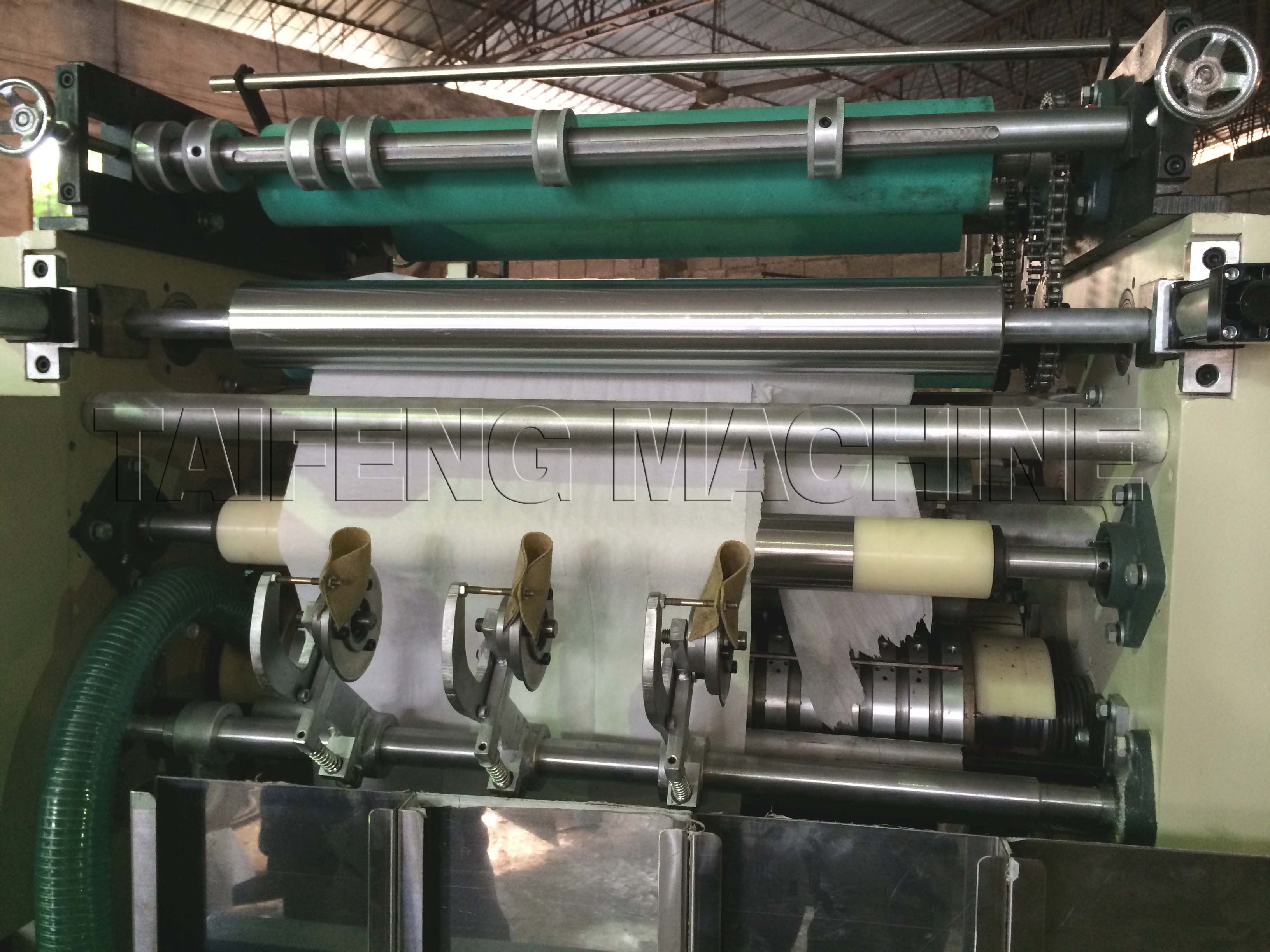 Have put roll tension control,,can adapt to high and low tension base paper production. In the paper can roll pattern, pattern is clear. Facial tissue machine adopts stepless speed regulation, conveyor, embossing, flowers; Vacuum folding, cutting.