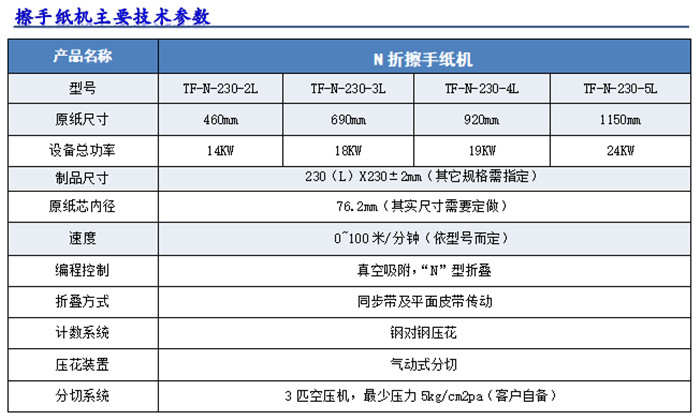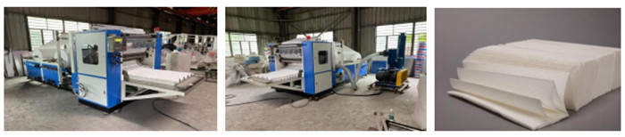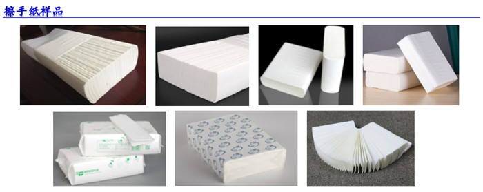 三折擦手纸机将分切好的擦手纸经压花切断,交互折叠成“N”型,使用时一张扣一张连续抽出,产品广泛用于酒店、办公室及厨房等供擦手用,方便卫生。该机原纸适就性强,折叠、分切、计数多道工序一体,具有速度高,出纸整齐等特点。