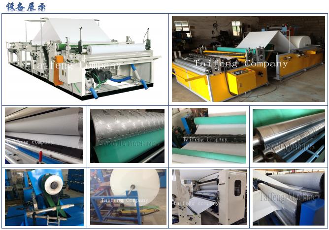 *人机对话操控,生产参数荧屏显示,断纸自动停机;*根据客户的要求可做双压花辊,可配套上胶复合装置生产厨房纸,可配套1-3色彩印设备。