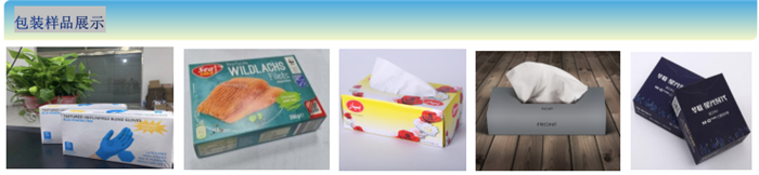 1.纸盒包装机适用于各种纸盒包装,如丁腈检查手套,乳胶手套,面巾纸,卷烟纸,饼干,食品,药品,纸巾盒等: